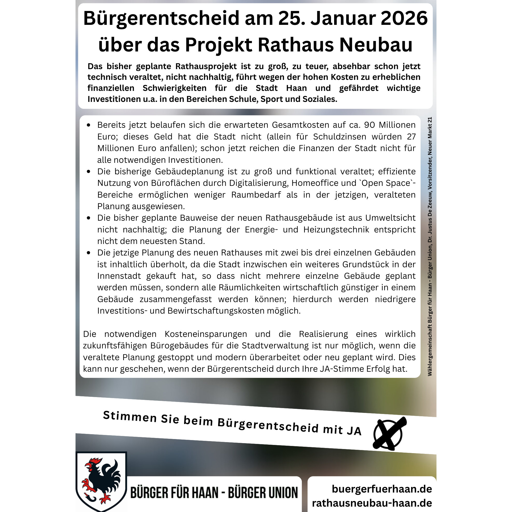 Bürger Union: Wer einen modernen, wirklich zukunftstauglichen und bezahlbaren Rathausneubau[…]